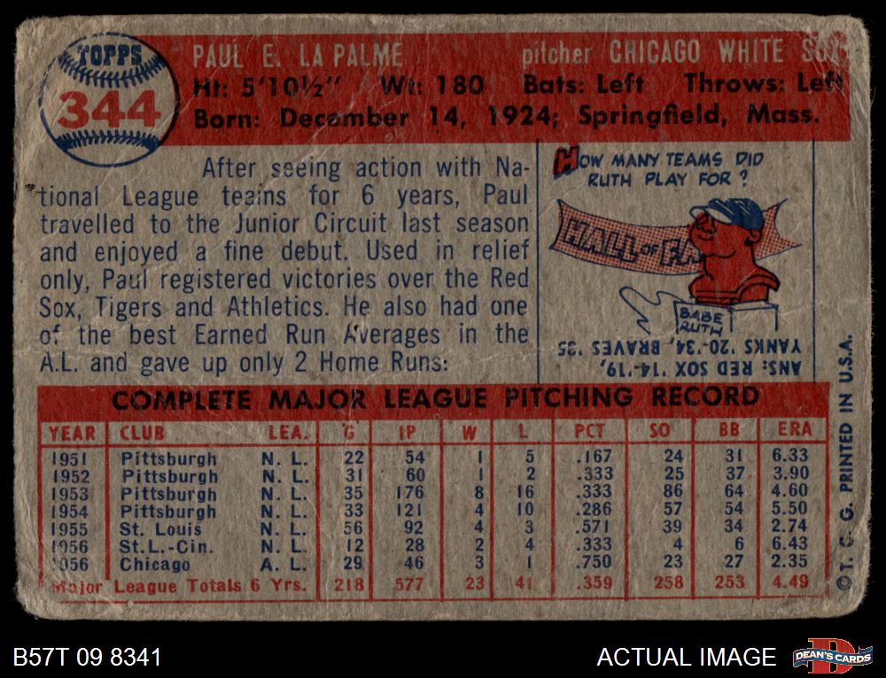 1957 Topps #344 Paul LaPalme