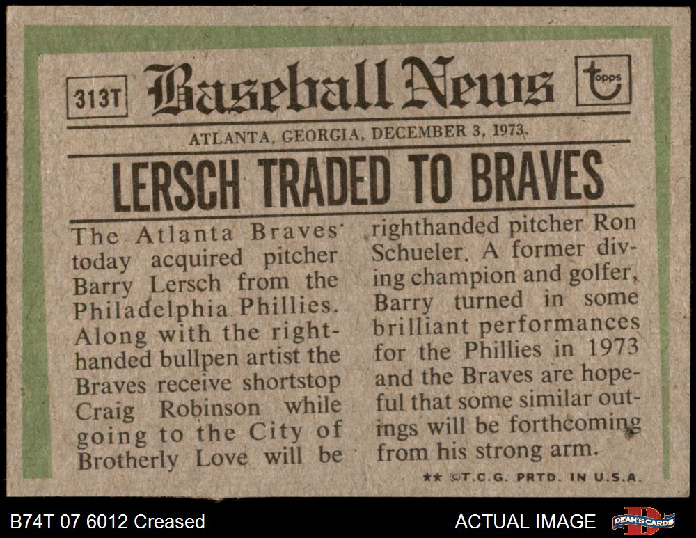 1974 Topps #313 T - Barry Lersch Traded 3.5 - VG+