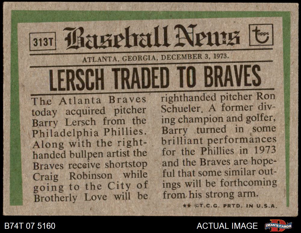 1974 Topps #313 T  -  Barry Lersch Traded Front Thumbnail