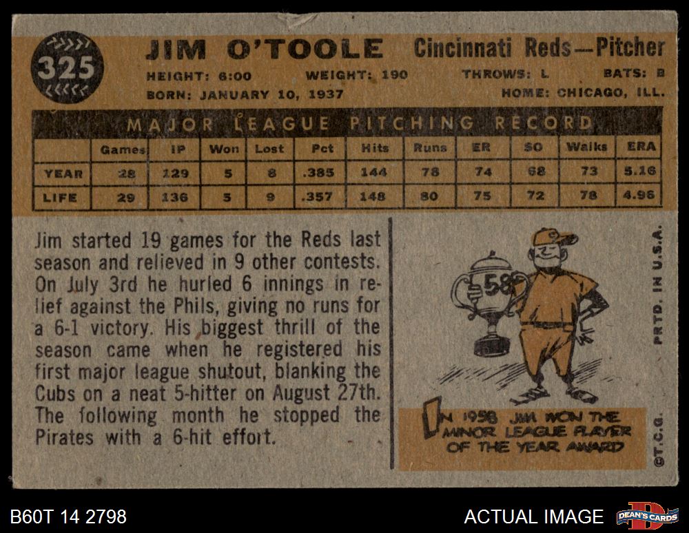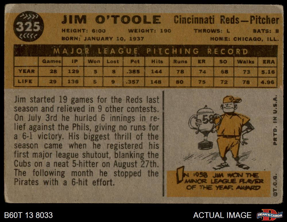 1960 Topps #325 Jim O'Toole 2 - GOOD