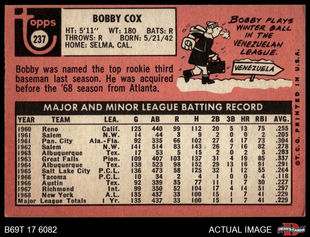 1969 Topps #237 Bobby Cox