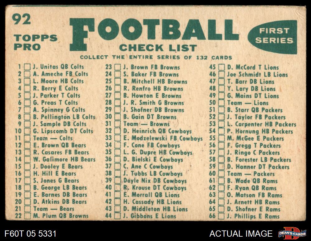 1960 Topps #92 Eagles Team Checklist 3 - VG