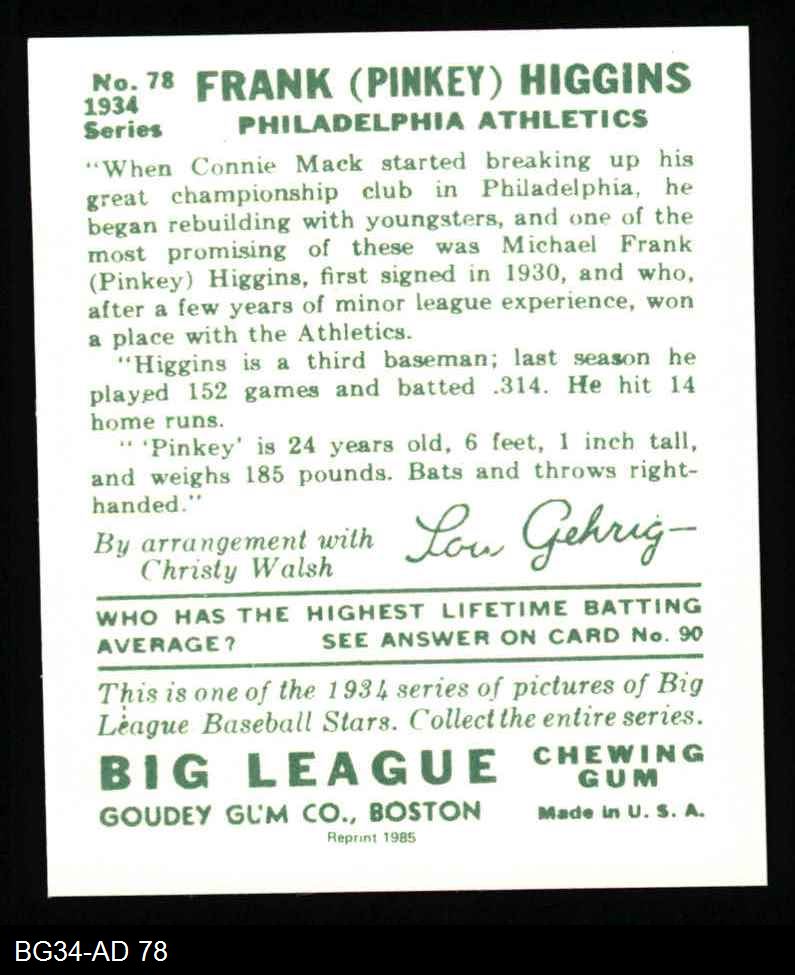 1934 Goudey Reprint #78 Pinky Higgins