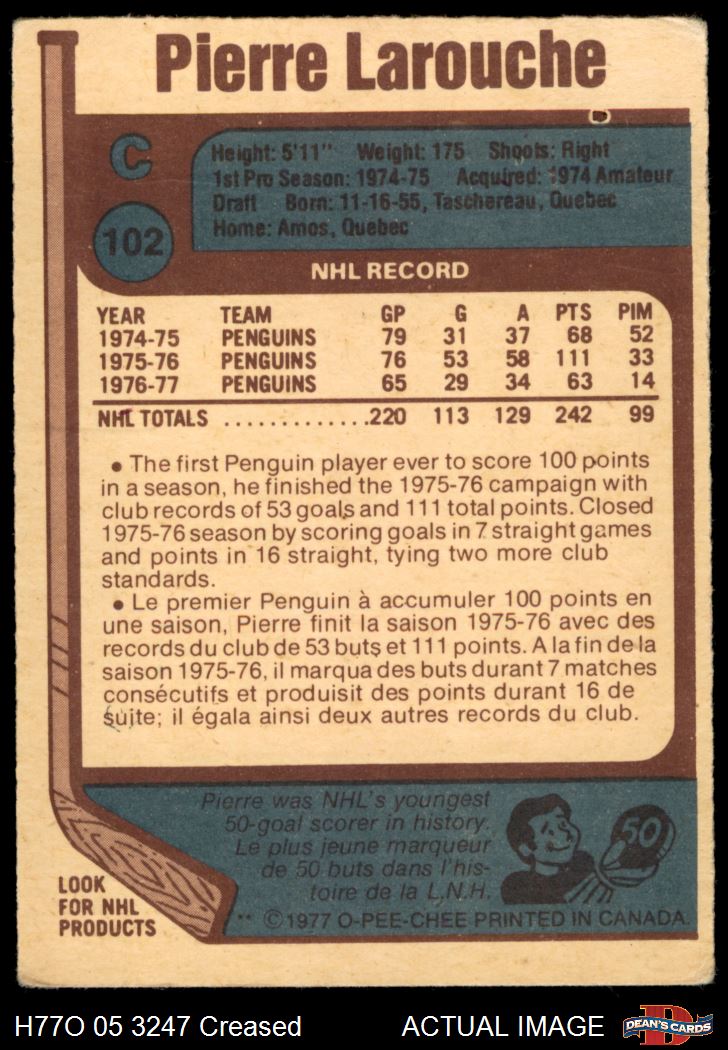 1977 O-Pee-Chee #102 Pierre Larouche Front Thumbnail