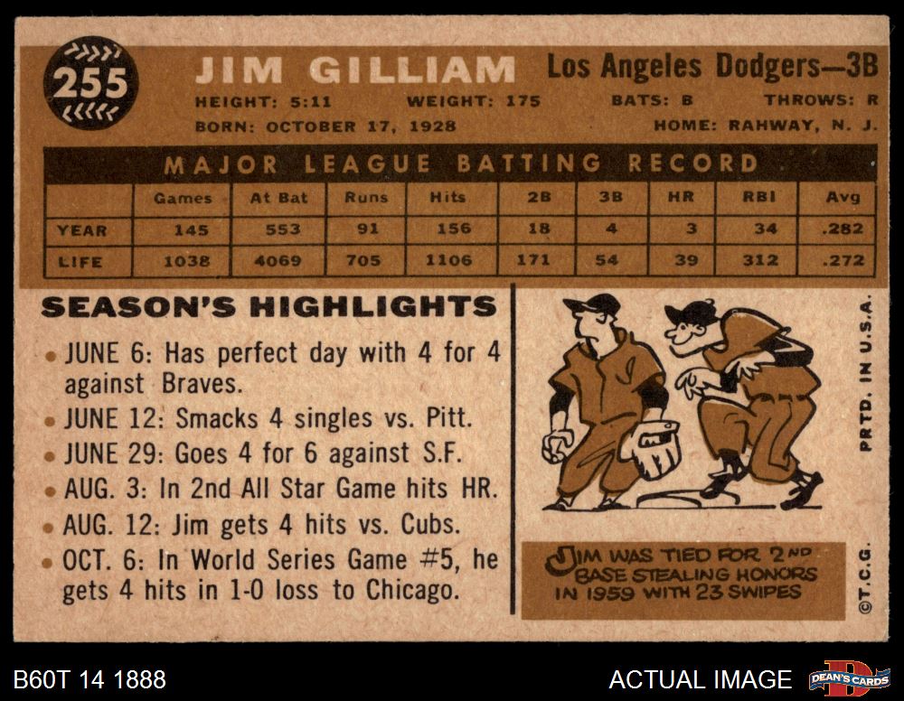 1960 Topps #255 Jim Gilliam 4.5 - VG/EX+