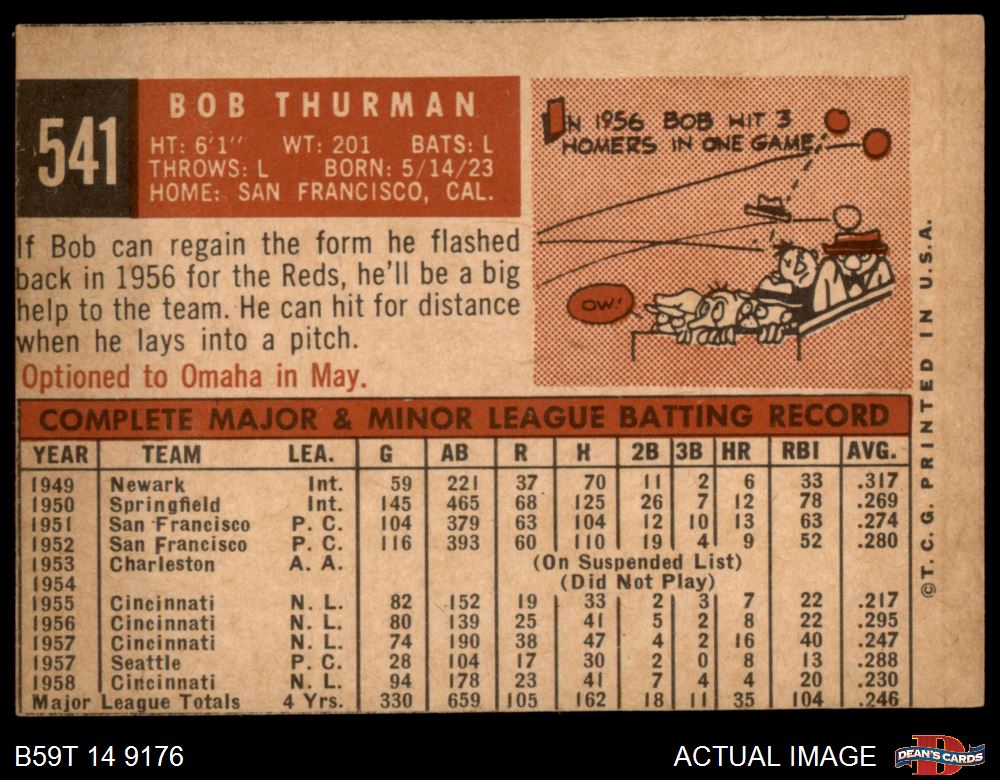 1959 Topps #541 Bob Thurman 1.5 - FAIR