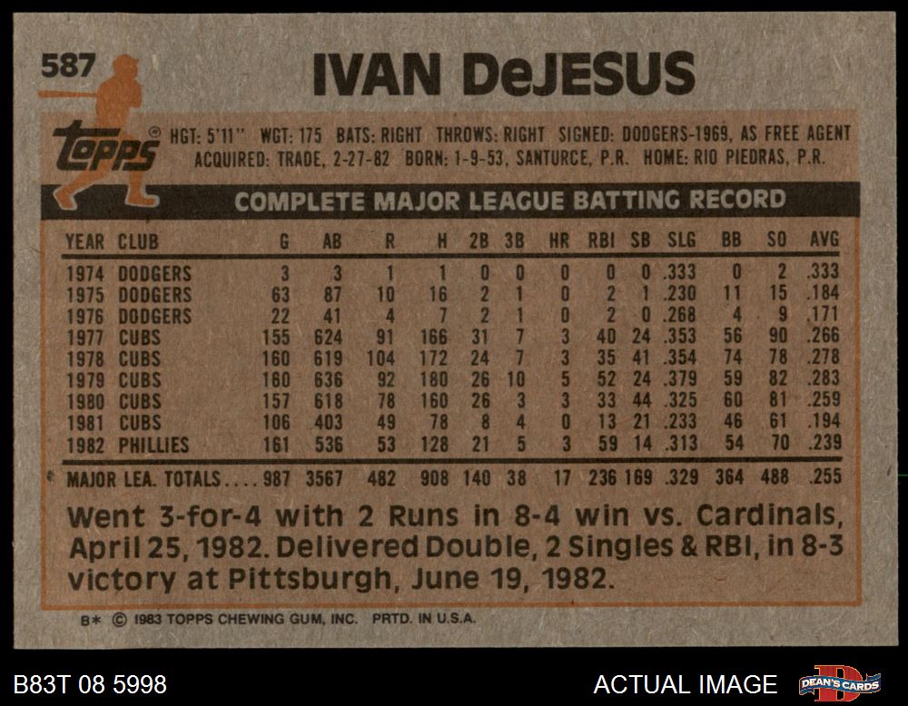 1983 Topps #587 Ivan DeJesus 8 - NM/MT