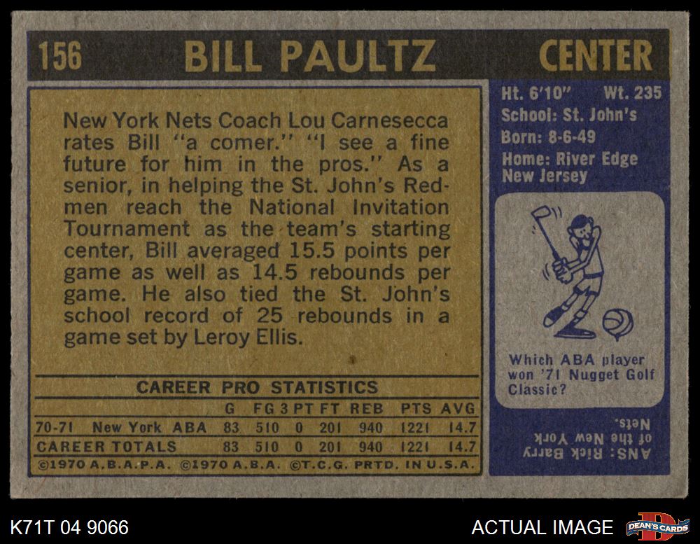 1971 Topps #156 Billy Paultz