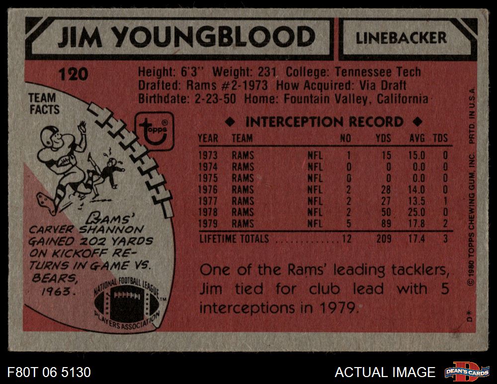 1980 Topps #120 - Jim Youngblood All-Pro 4 - VG/EX