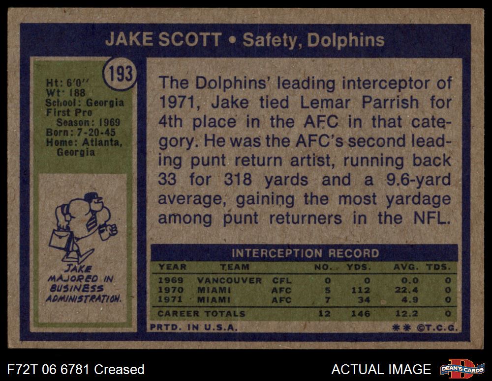 1972 Topps #193 Jake Scott 3 - VG