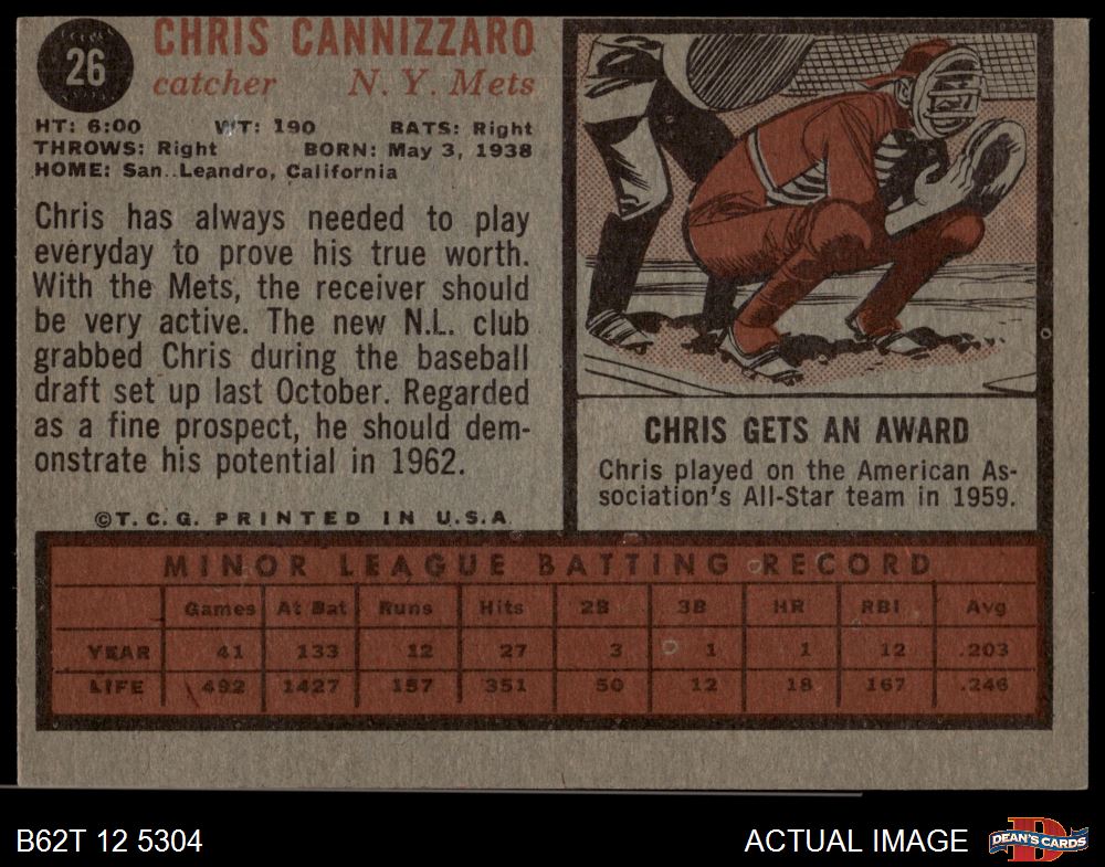 1962 Topps #26 Chris Cannizzaro 3 - VG