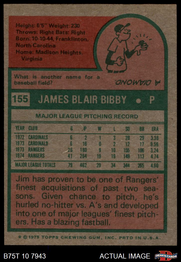 1975 Topps #155 Jim Bibby 6 - EX/MT