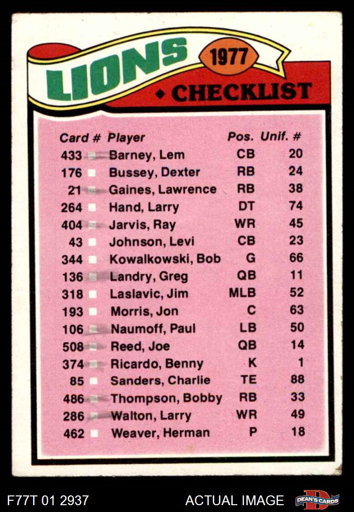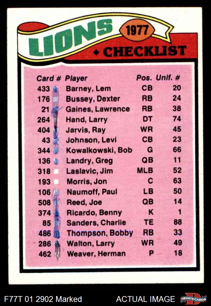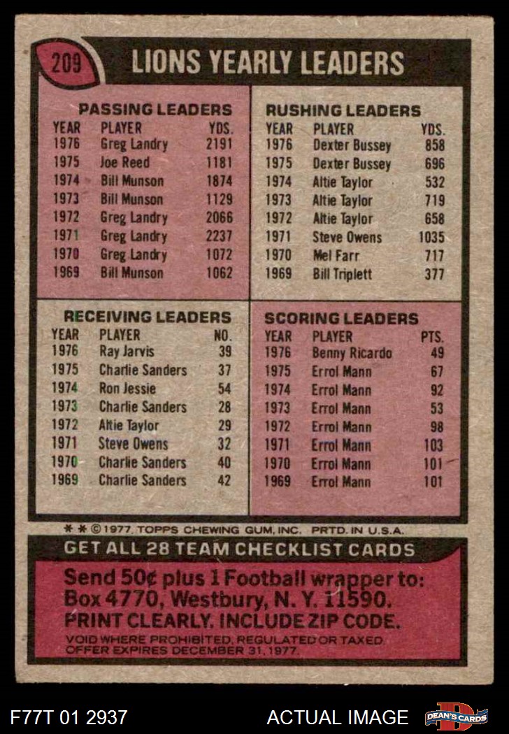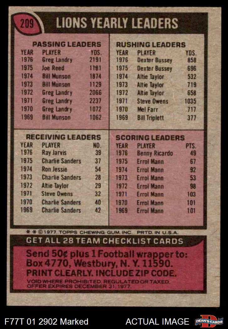1977 Topps #209 Lions Team Checklist 1 - POOR