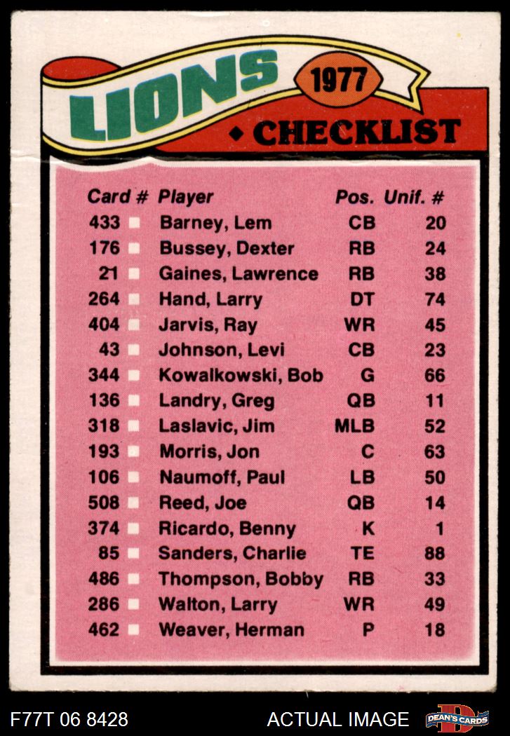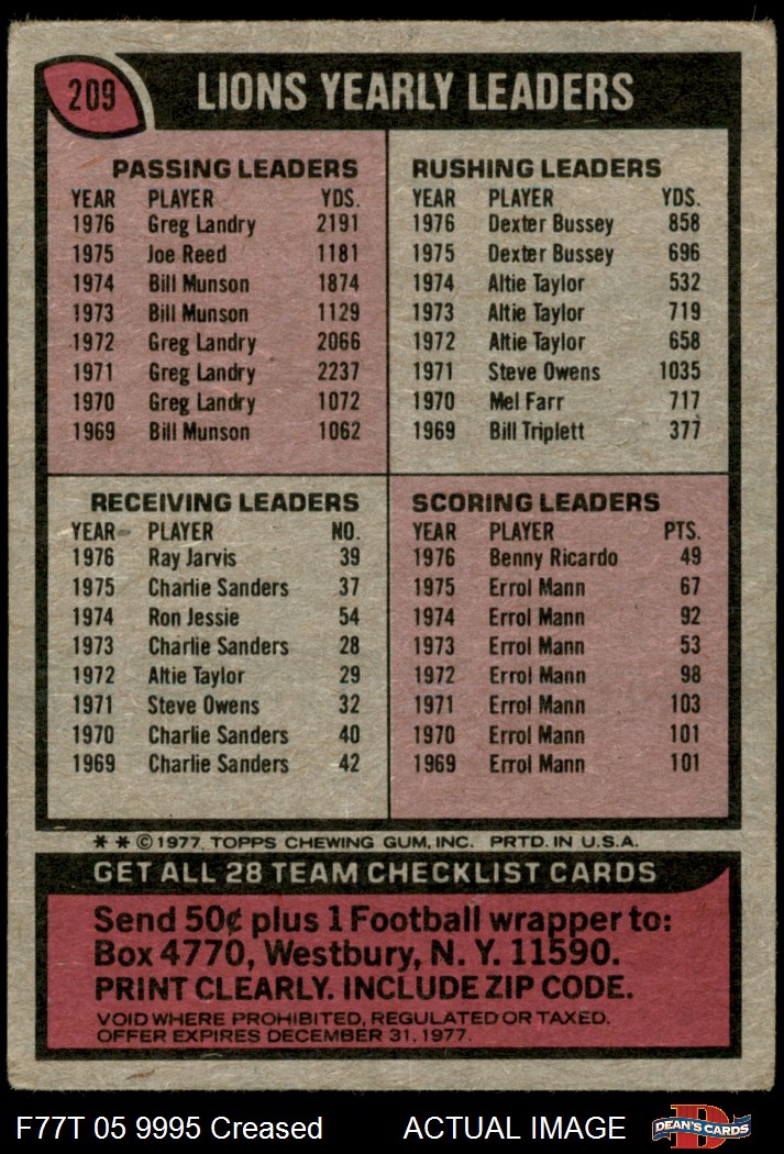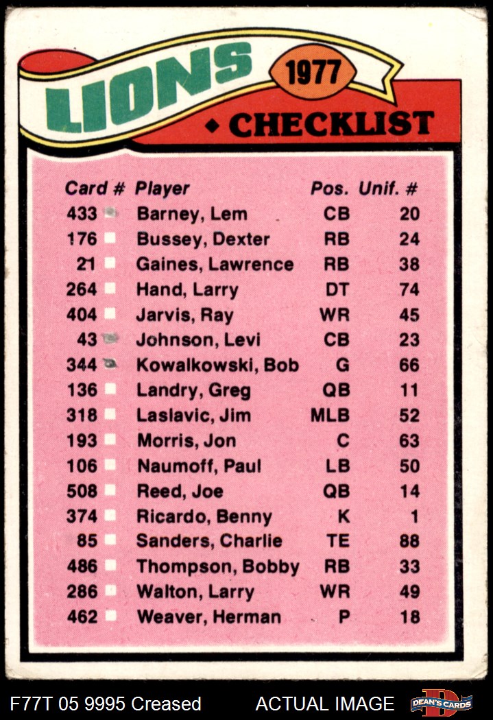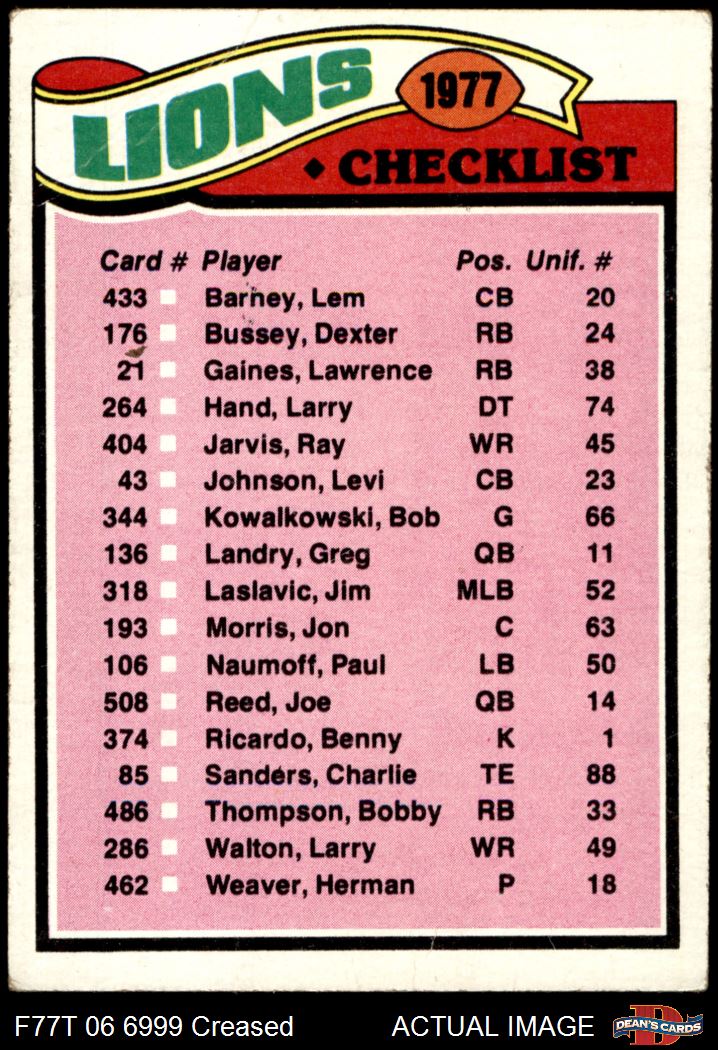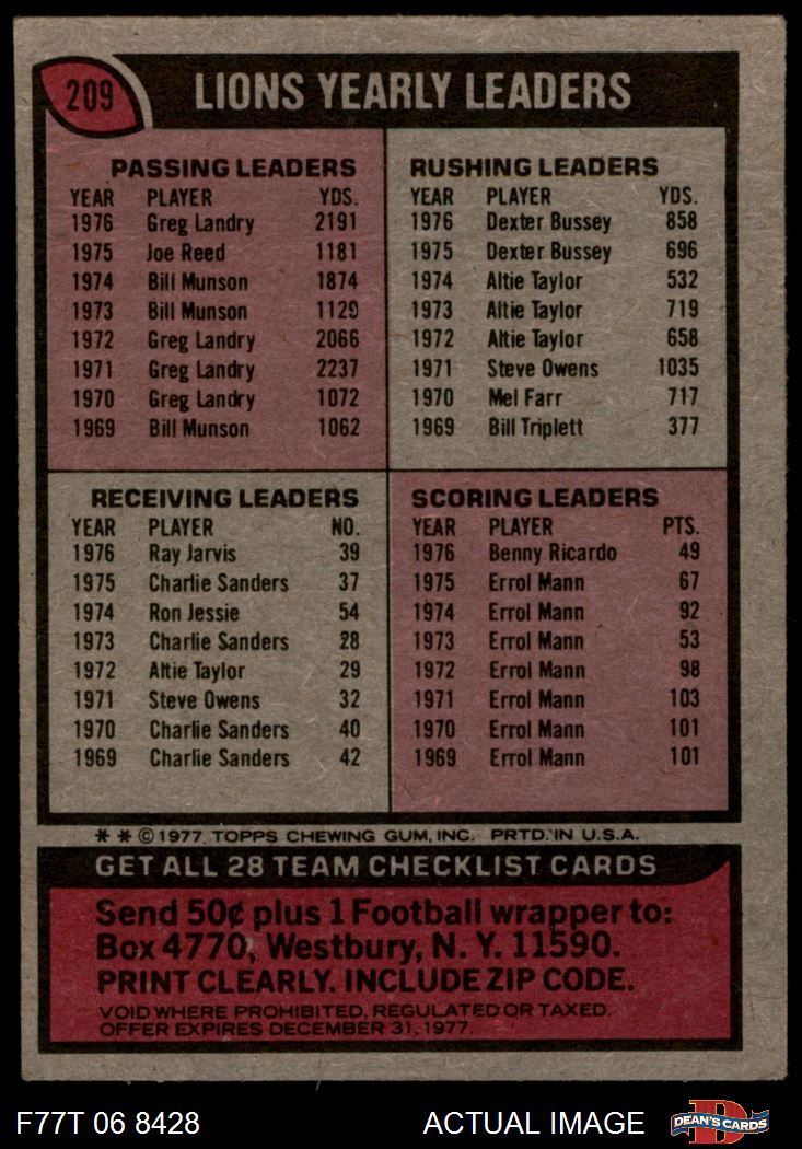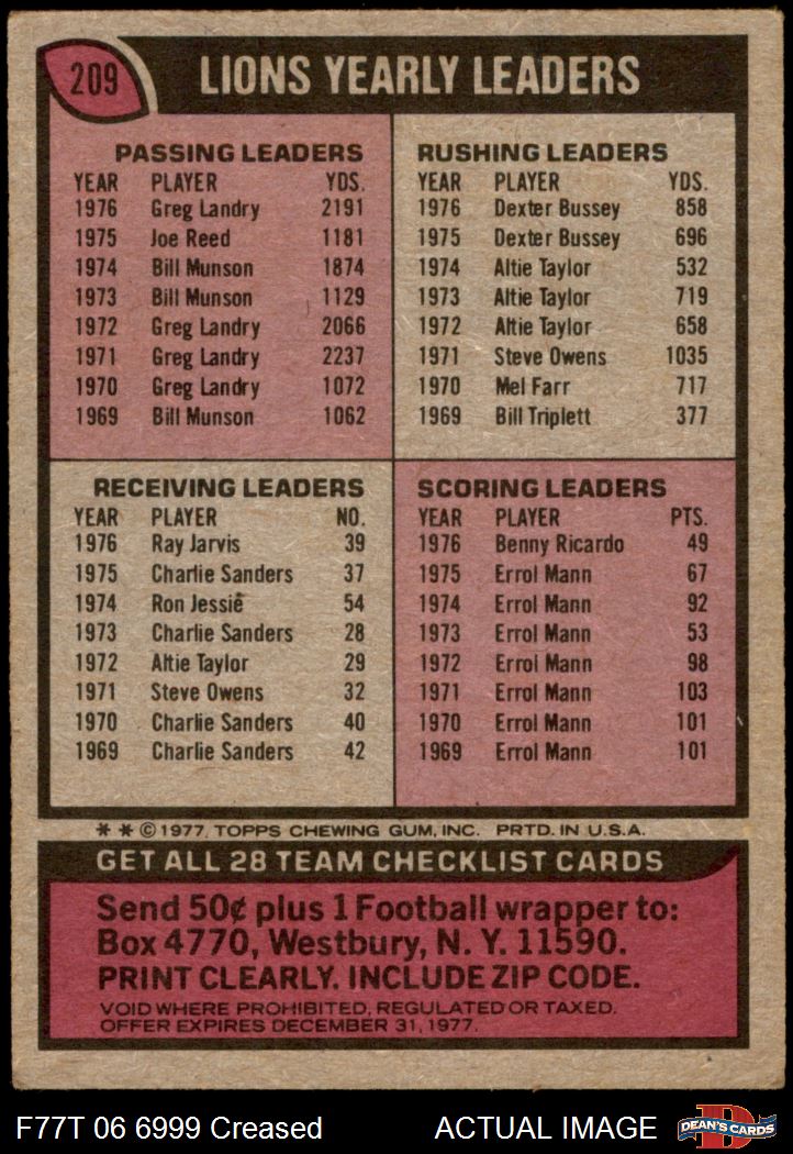 1977 Topps #209 Lions Team Checklist 2 - GOOD