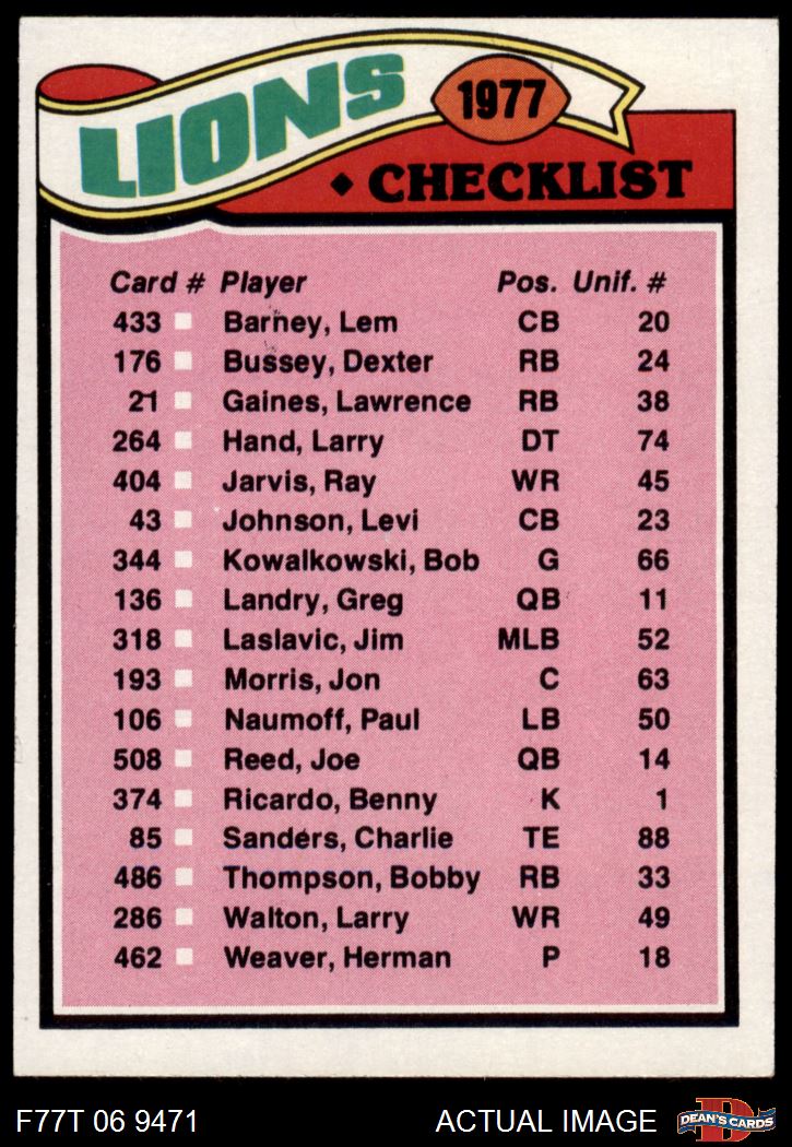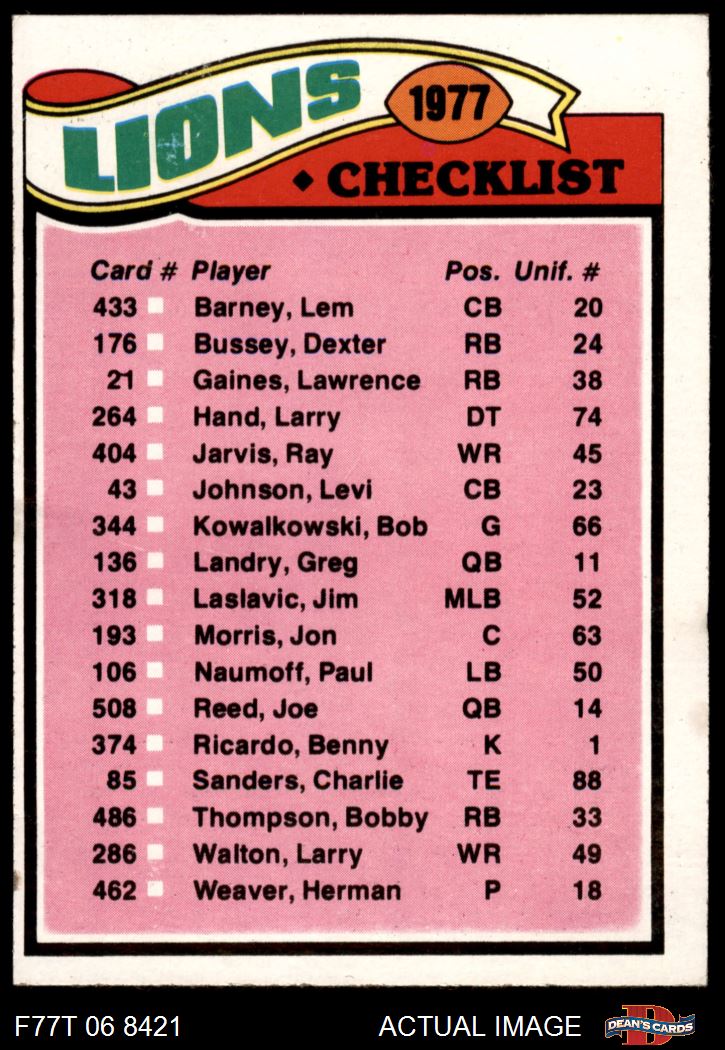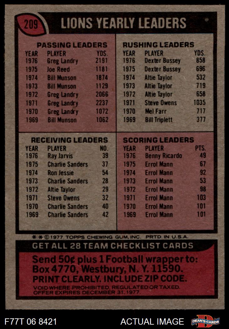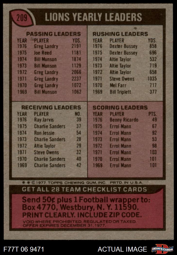 1977 Topps #209 Lions Team Checklist 4 - VG/EX