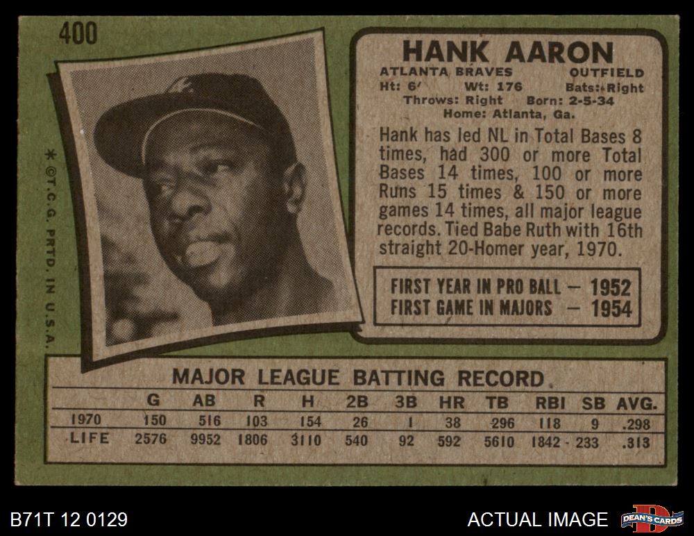 1971 Topps #400 Hank Aaron 5 - EX