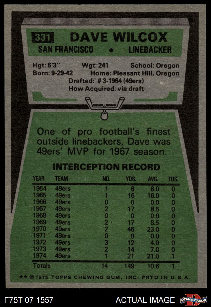 1975 Topps #331 Dave Wilcox
