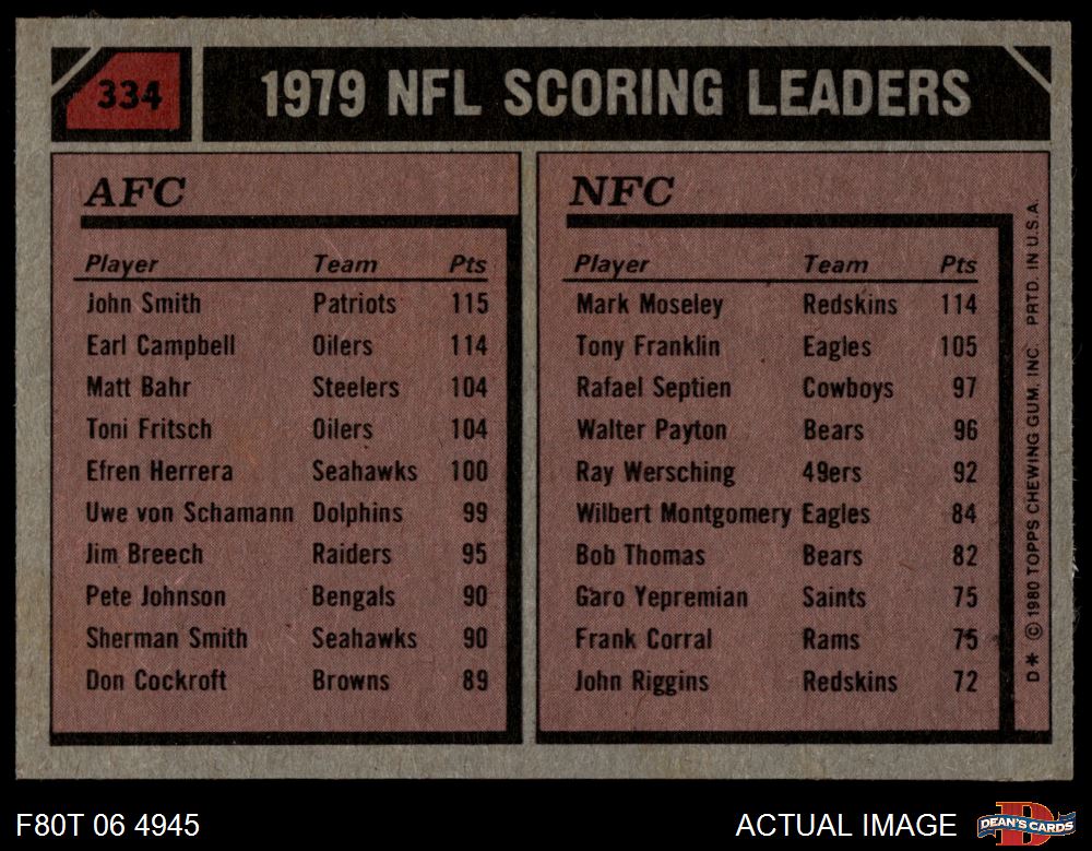 1980 Topps #334 - John Smith / Mark Moseley Scoring Leaders 4 - VG/EX