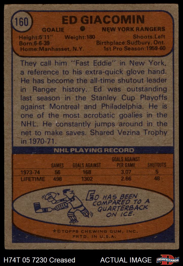 1974 Topps #160 Ed Giacomin 2 - GOOD