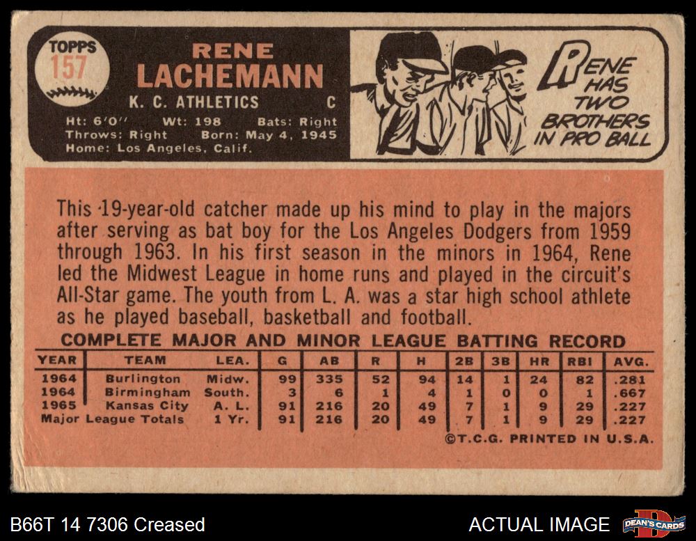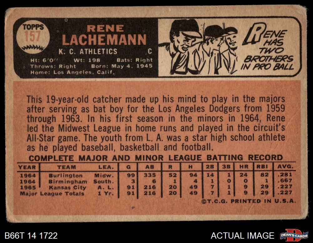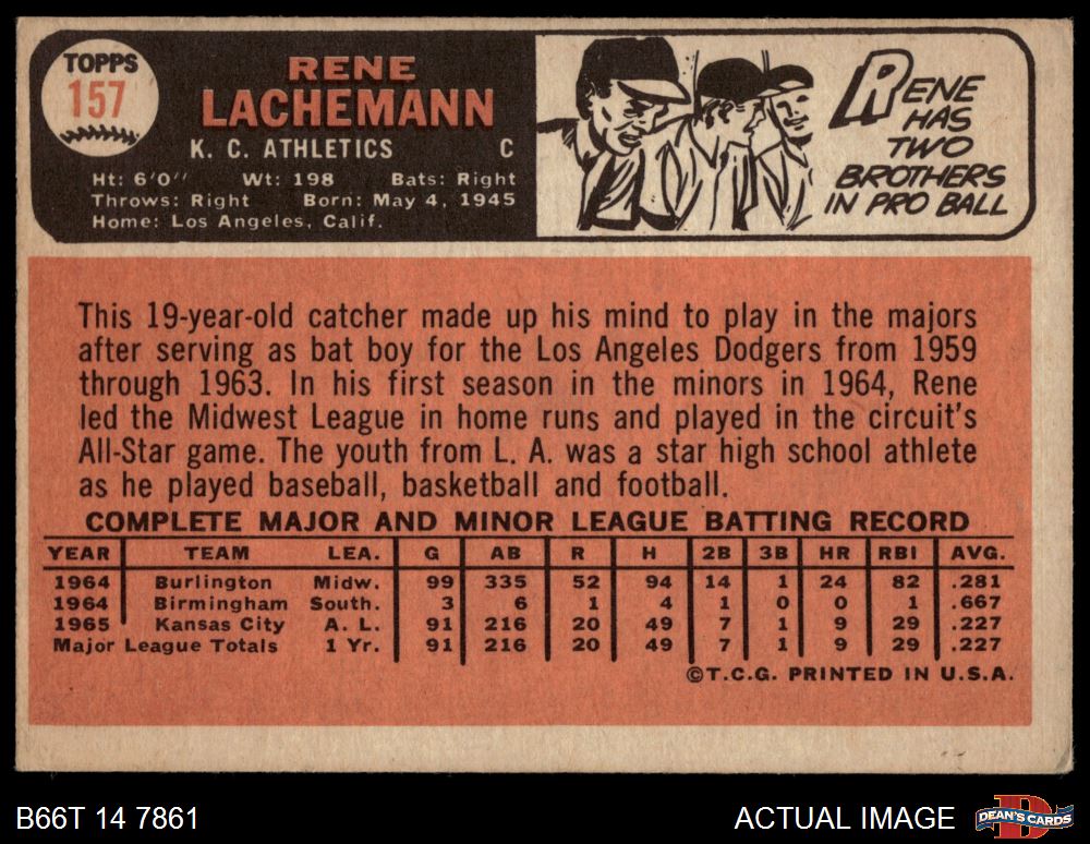 1966 Topps #157 Rene Lachemann