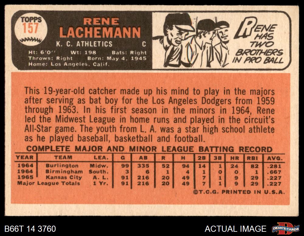 1966 Topps #157 Rene Lachemann 4 - VG/EX