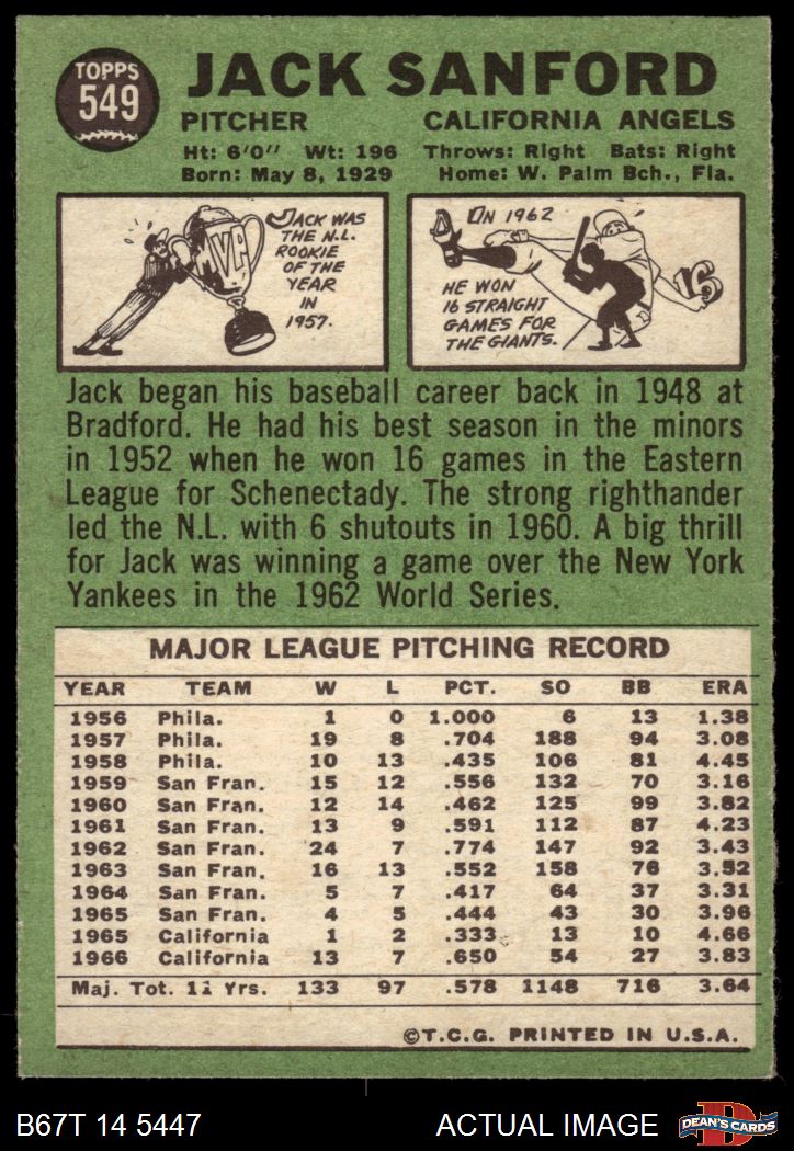 1967 Topps #549 Jack Sanford