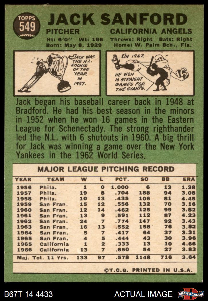 1967 Topps #549 Jack Sanford 6 - EX/MT