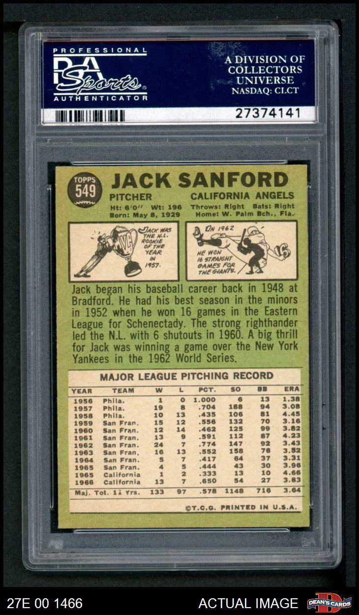 1967 Topps #549 Jack Sanford PSA 7 - NM