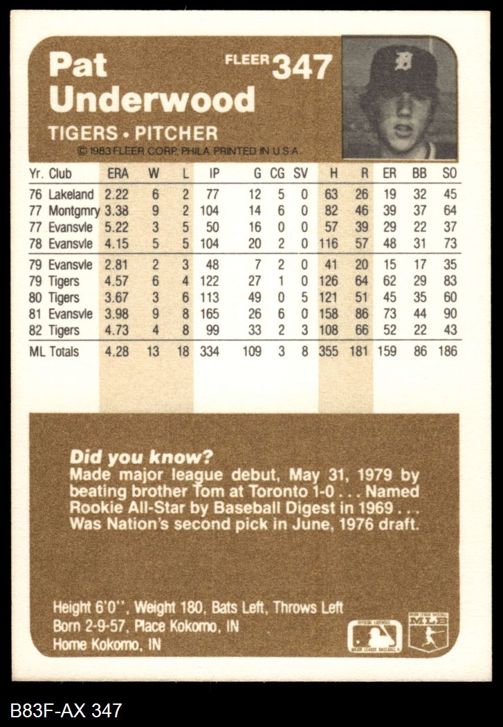 1983 Fleer #347 Pat Underwood 8 - NM/MT