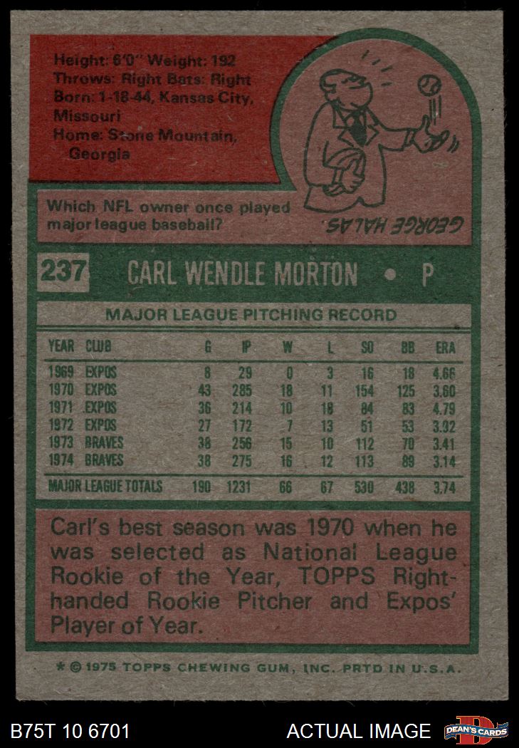 1975 Topps #237 Carl Morton 6 - EX/MT