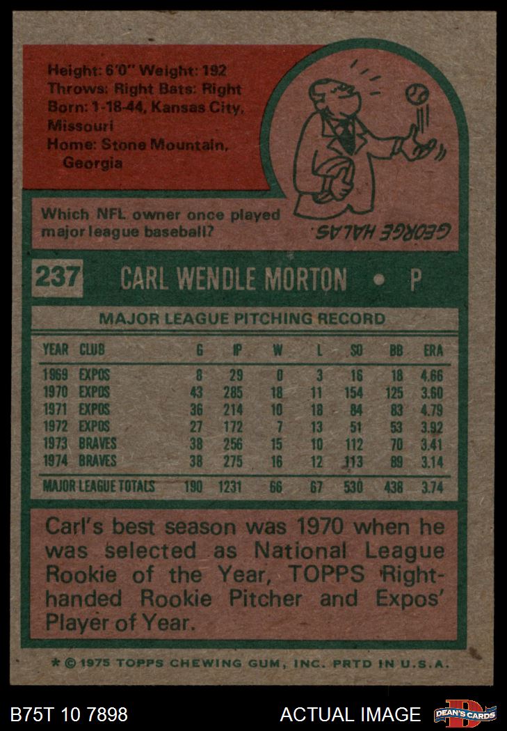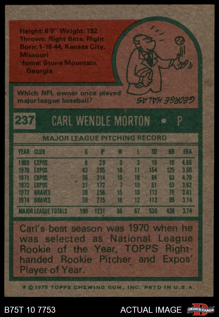 1975 Topps #237 Carl Morton 7.5 - NM+