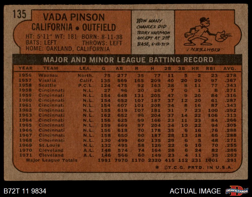 1972 Topps #135 Vada Pinson 1.5 - FAIR