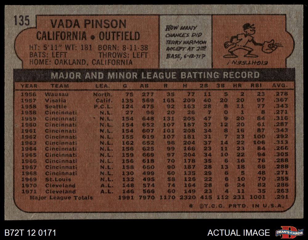 1972 Topps #135 Vada Pinson 5.5 - EX+