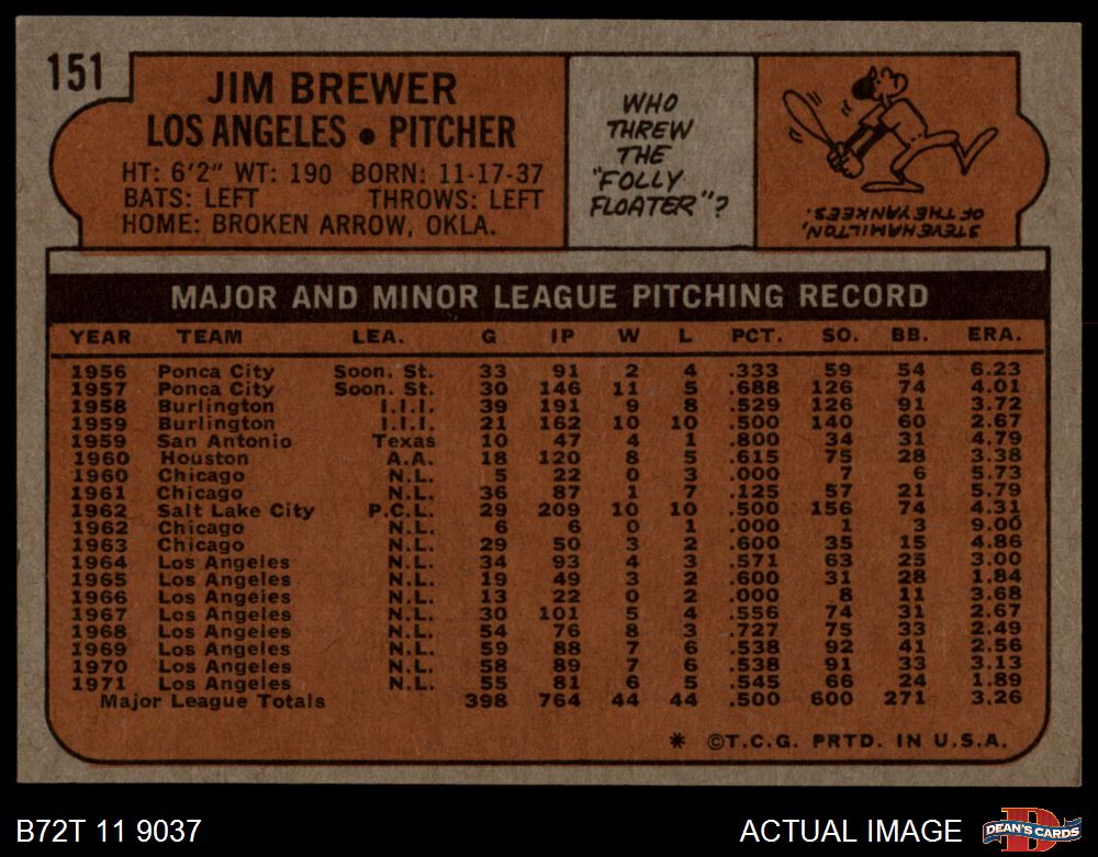 1972 Topps #151 Jim Brewer 6 - EX/MT