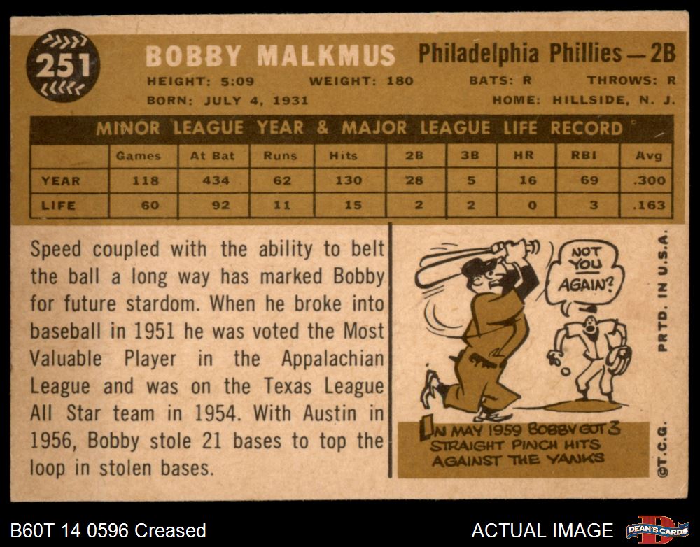 1960 Topps #251 Bobby Malkmus 2 - GOOD
