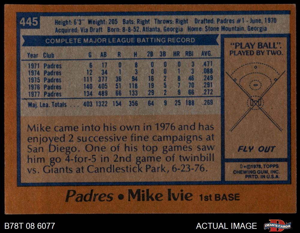 1978 Topps #445 Mike Ivie 4 - VG/EX