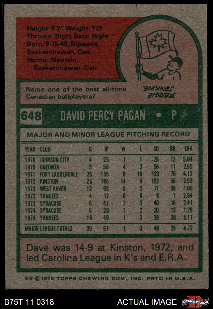 1975 Topps #648 Dave Pagan 5 - EX