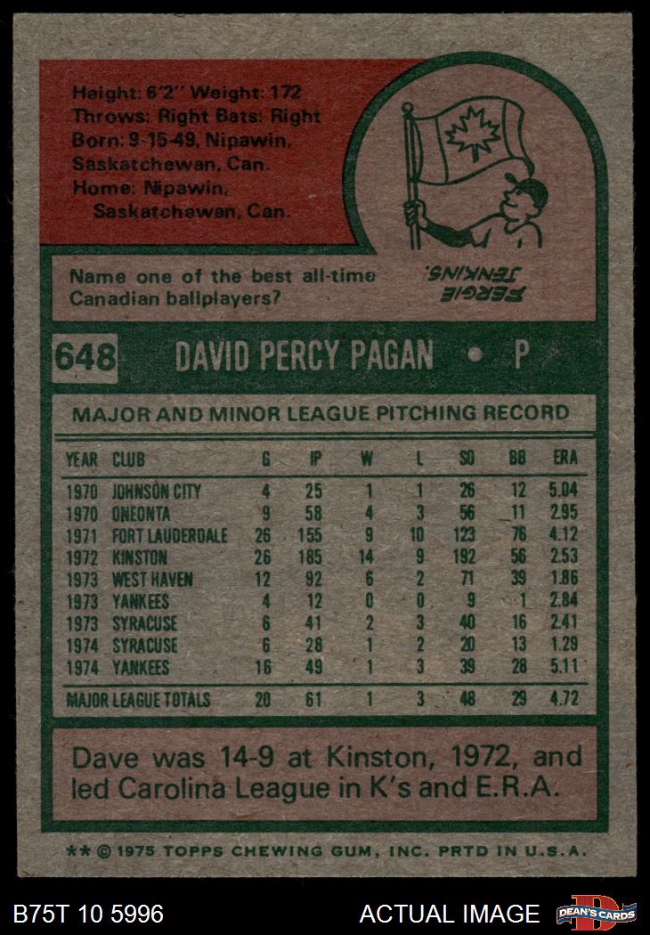 1975 Topps #648 Dave Pagan 7.5 - NM+