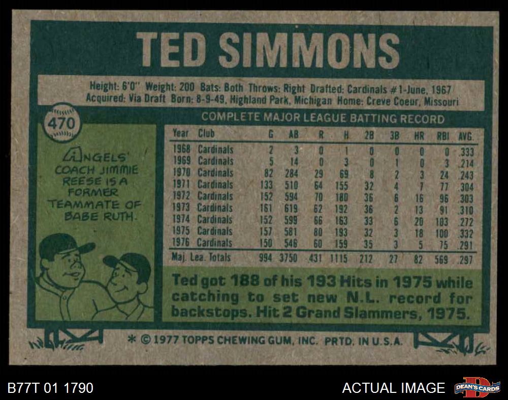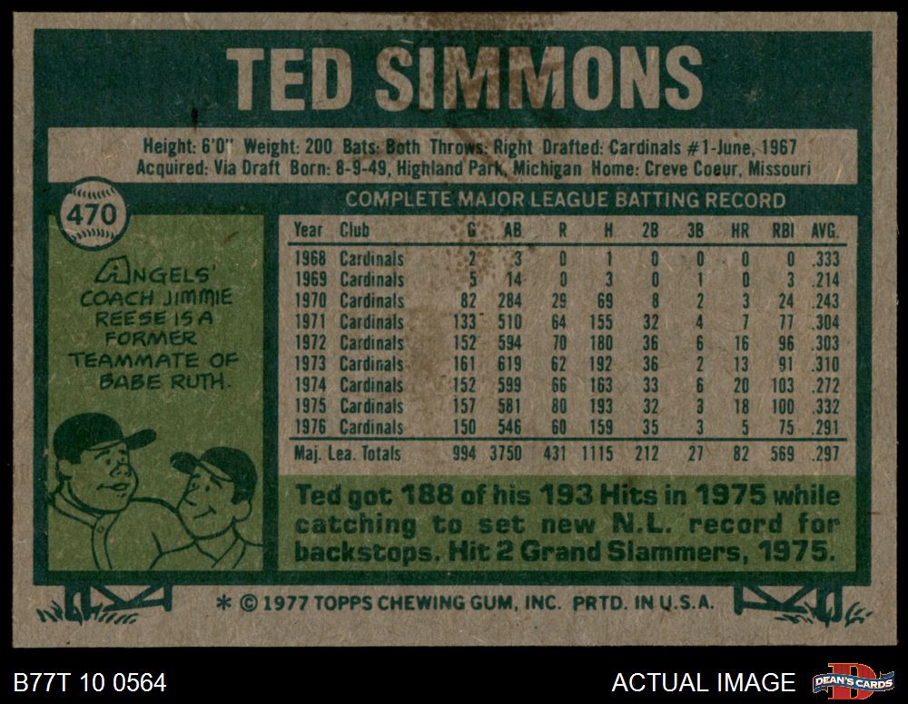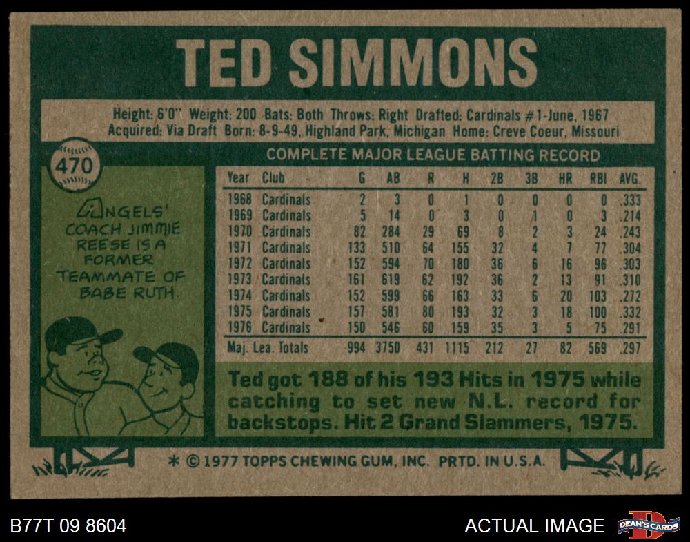 1977 Topps #470 Ted Simmons 6 - EX/MT