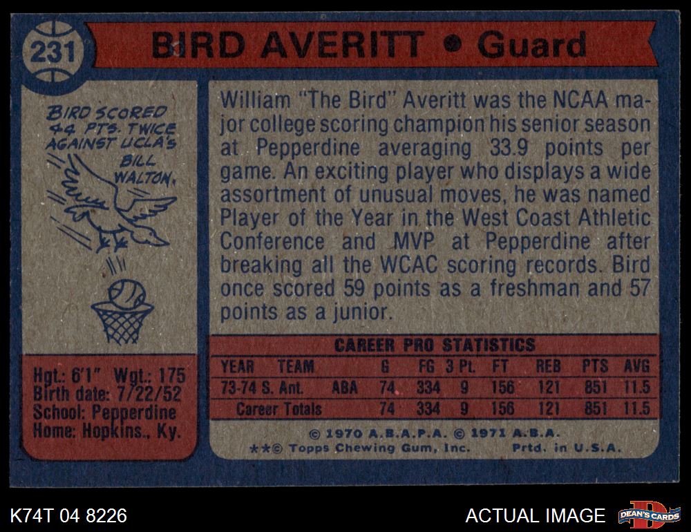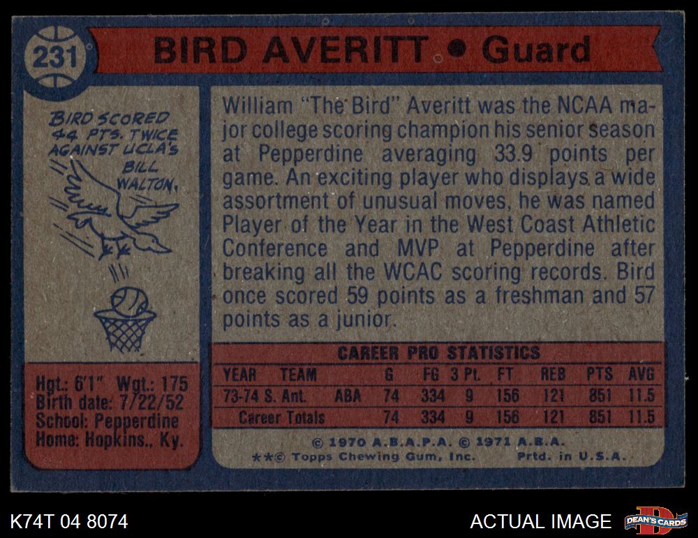 1974 Topps #231 Bird Averitt 4 - VG/EX