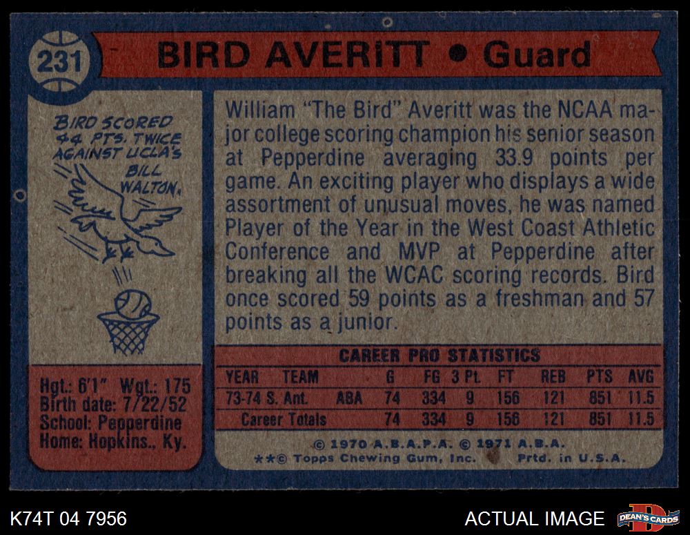 1974 Topps #231 Bird Averitt 7.5 - NM+