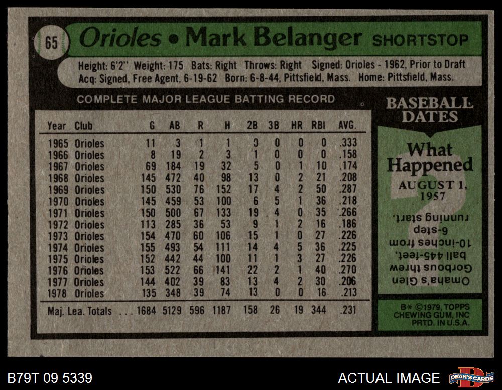 1979 Topps #65 Mark Belanger 8 - NM/MT
