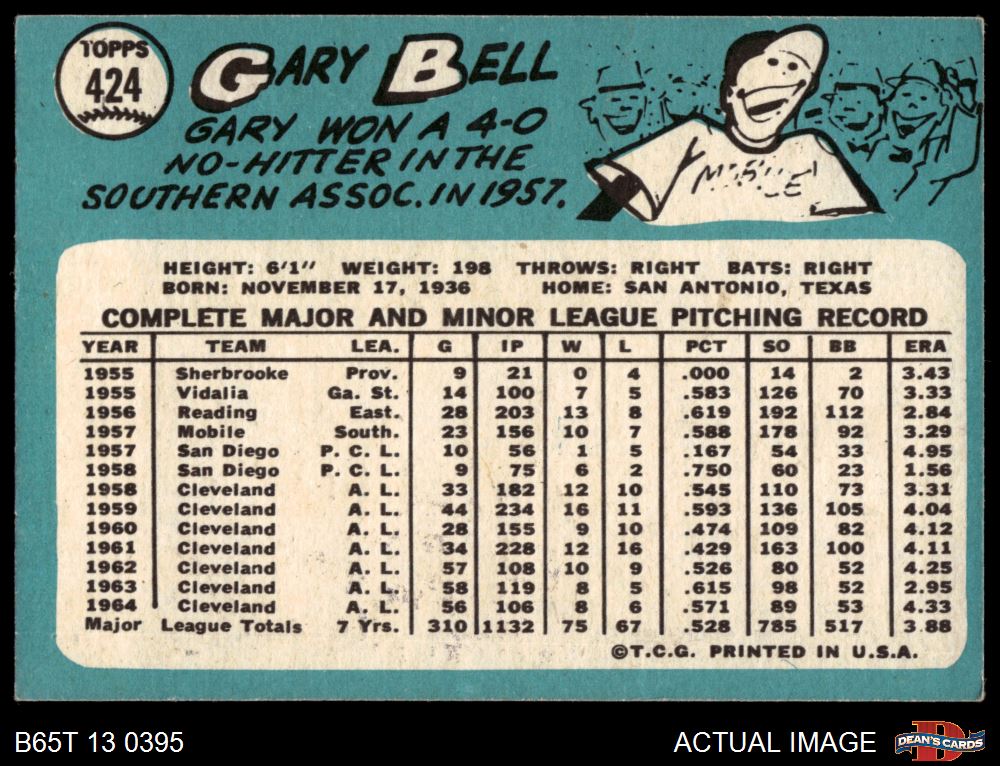 1965 Topps #424 Gary Bell 4 - VG/EX