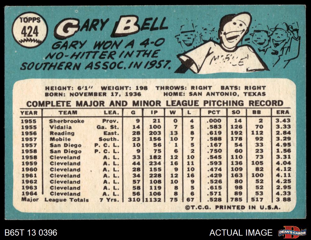 1965 Topps #424 Gary Bell 4.5 - VG/EX+