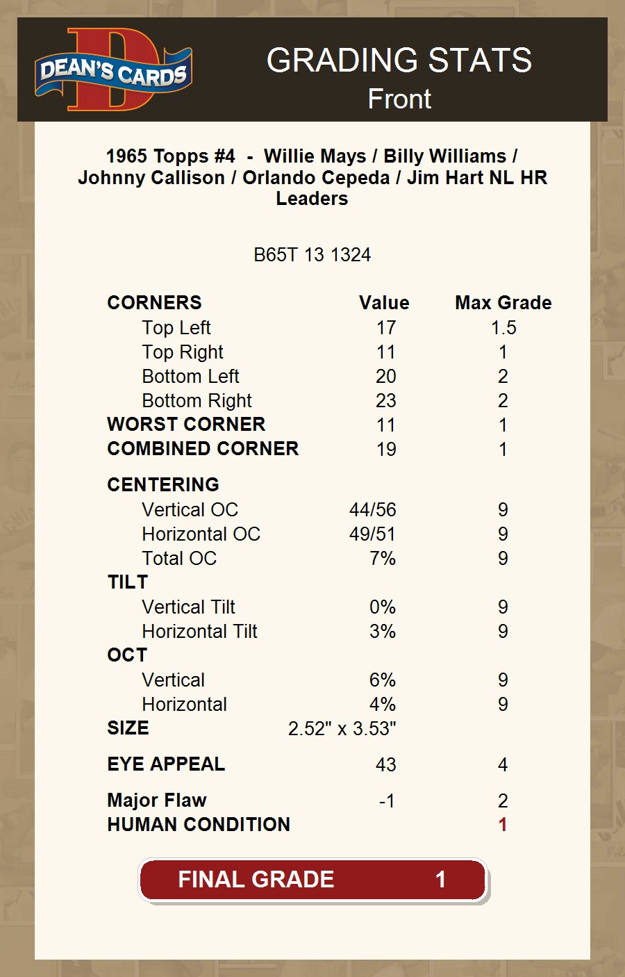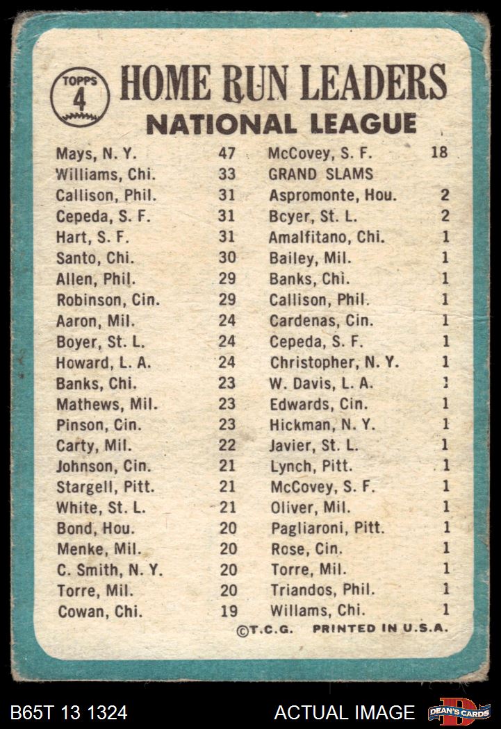 1965 Topps #4 - Willie Mays / Billy Williams / Johnny Callison / Orlando Cepeda / Jim Hart NL HR Leaders 1 - POOR