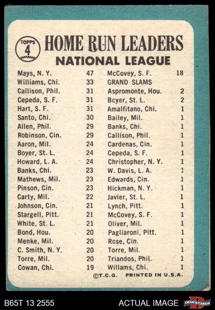 1965 Topps #4 - Willie Mays / Billy Williams / Johnny Callison / Orlando Cepeda / Jim Hart NL HR Leaders 1.5 - FAIR