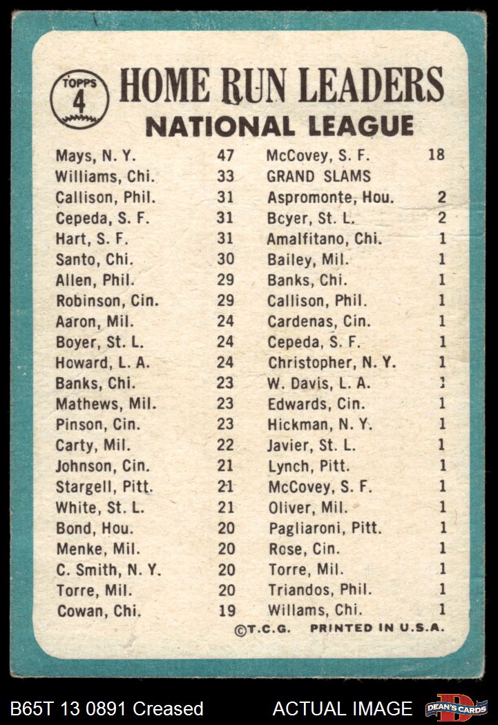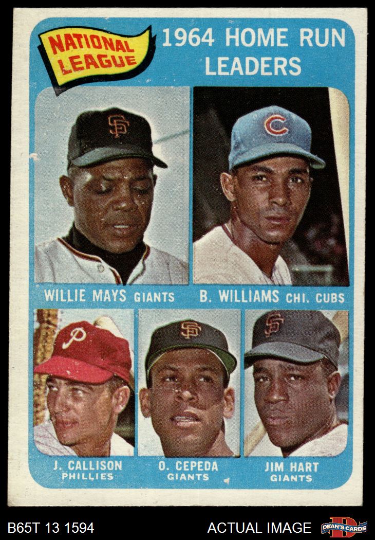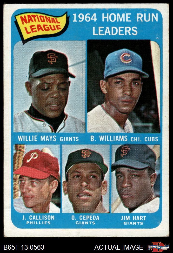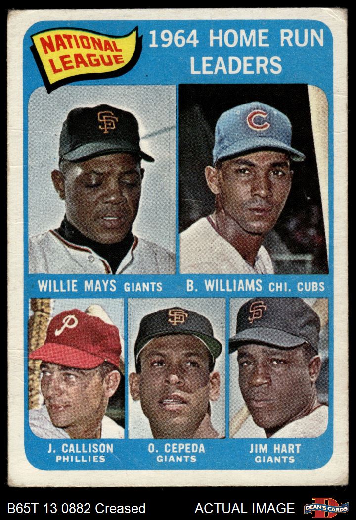 1965 Topps #4 - Willie Mays / Billy Williams / Johnny Callison / Orlando Cepeda / Jim Hart NL HR Leaders 2 - GOOD