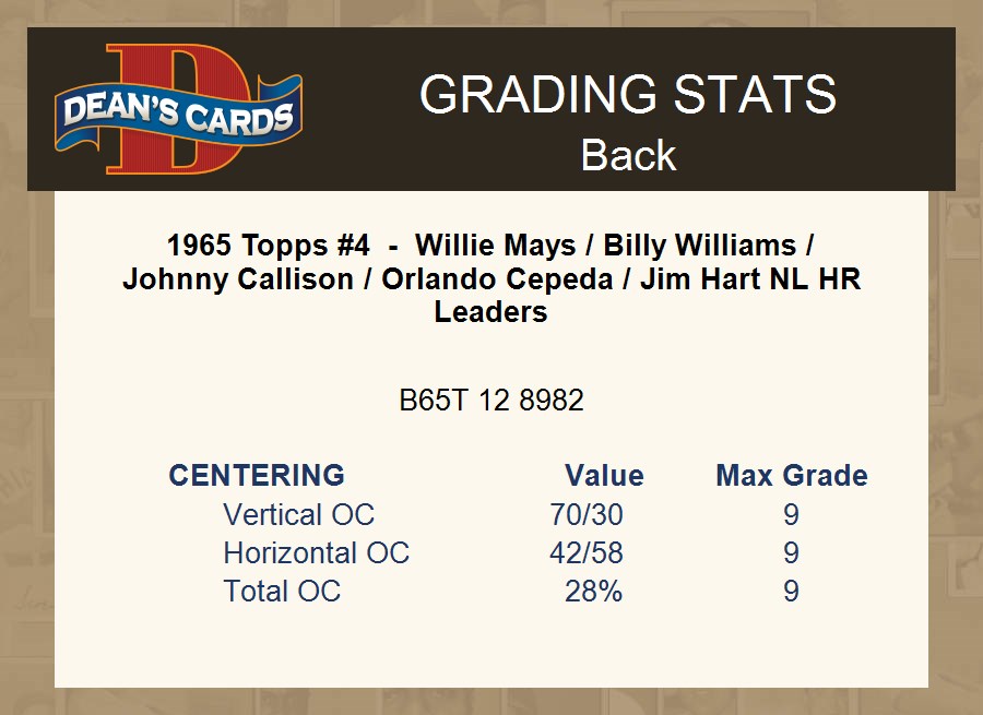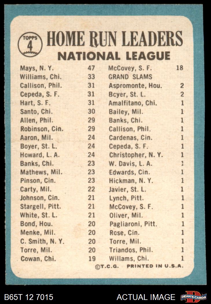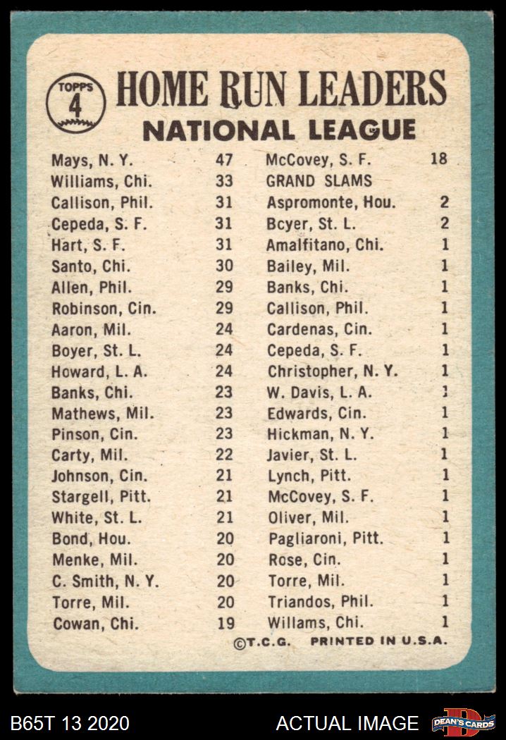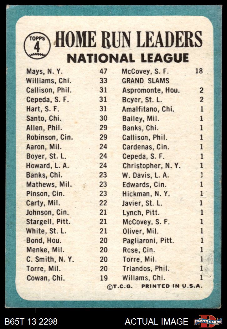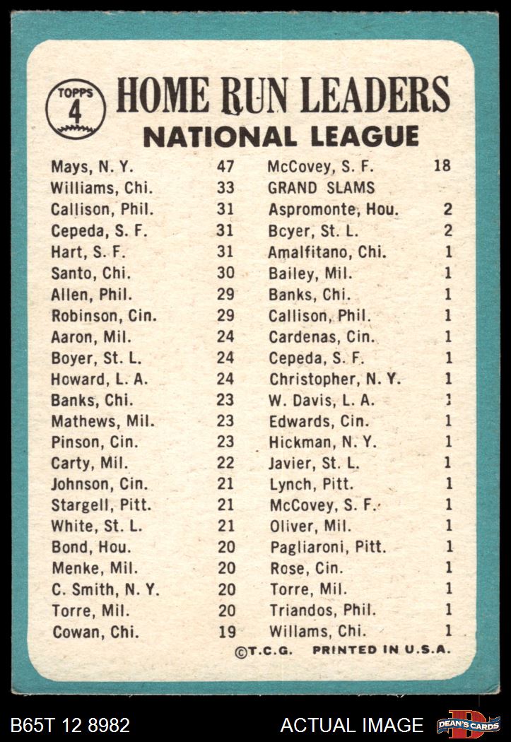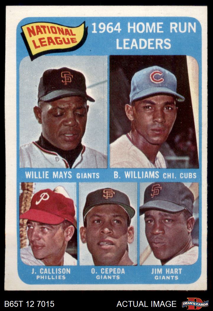 1965 Topps #4 - Willie Mays / Billy Williams / Johnny Callison / Orlando Cepeda / Jim Hart NL HR Leaders 4 - VG/EX