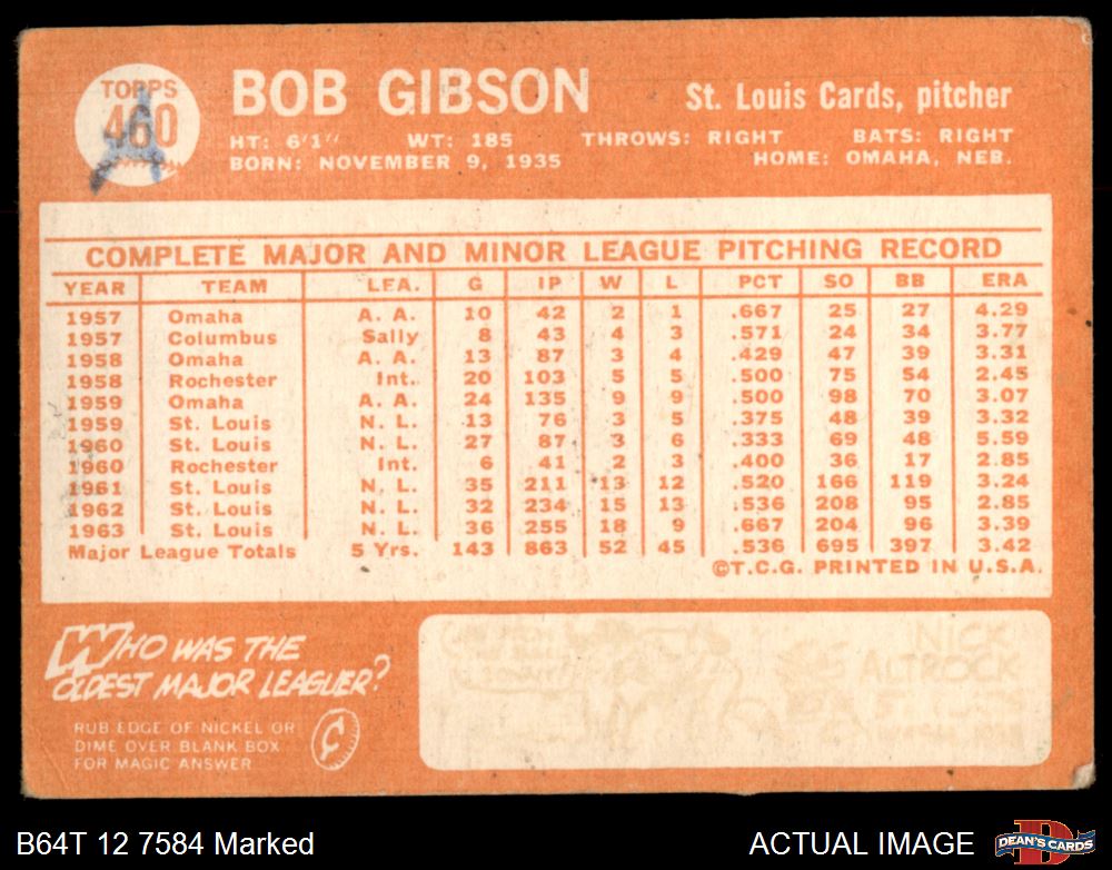 1964 Topps #460 Bob Gibson 1.5 - FAIR