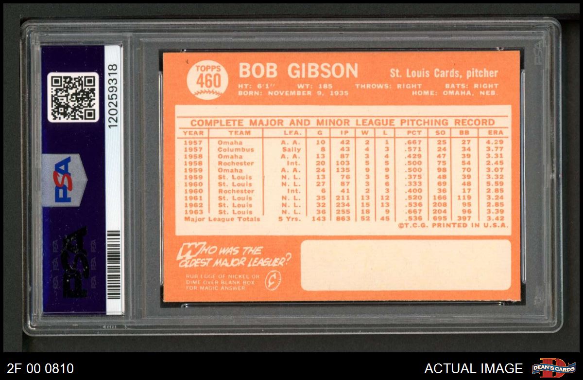 1964 Topps #460 Bob Gibson PSA 8 - NM/MT